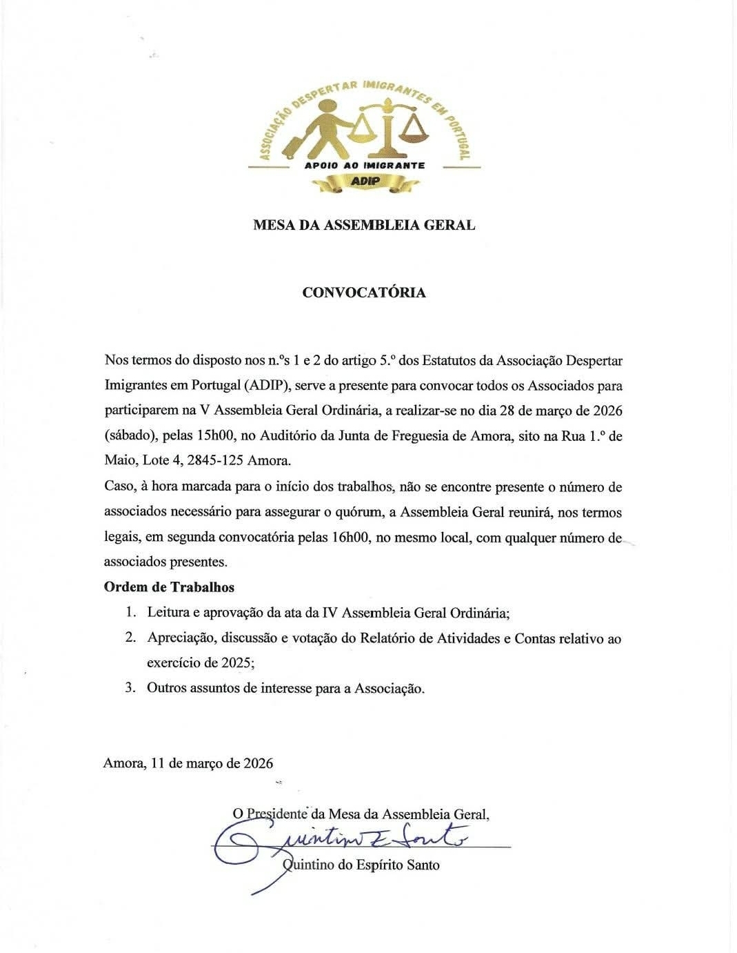 V Assembleia Geral — 28 de Março de 2026